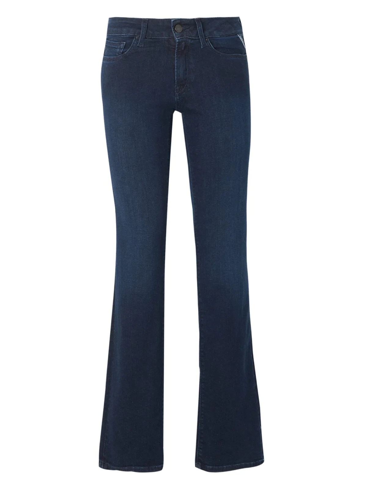 Design: Gevoerde zoom/rand, Ritssluiting, 5-pocket-style; Type sluiting: Ritssluiting; Materiaal: Denim; Motief: Effen; Extra's: Studs, Label borduurwerk, Op staal naden, Stevige stof, Riemlussen; Wassing: Rinsed/dark washed; Lengte: Lang/maxi; Pasvorm: Flared; Taillehoogte: Low waist