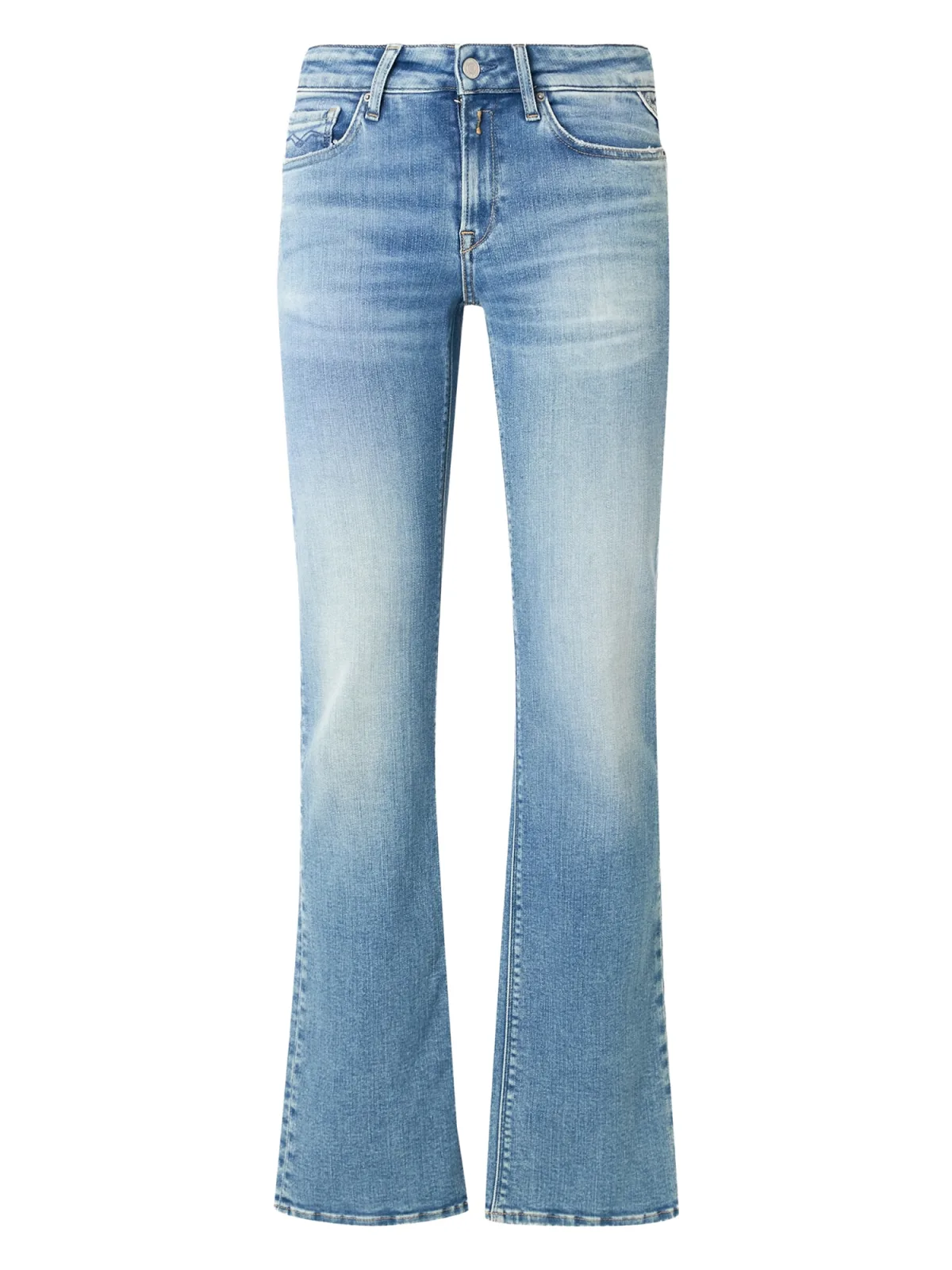 Design: Gevoerde zoom/rand, Ritssluiting, 5-pocket-style, Knop sluiting; Type sluiting: Ritssluiting; Materiaal: Denim; Motief: Effen; Extra's: Label patch/label flag, Gewassen effect, Vaste grip, Riemlussen; Wassing: Light washed; Lengte: Lang/maxi; Pasvorm: Bootcut; Taillehoogte: Mid waist