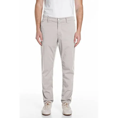 Deze REPLAY chino is een veelzijdige basis voor je garderobe. De broek heeft een regular fit die niet te strak en niet te wijd valt. De zachte bone kleur met taupe ondertoon maakt combineren eenvoudig, of je nu kiest voor een T-shirt, overhemd of trui. Dankzij het materiaal van 98% katoen en 2% elastaan voelt de stof soepel aan en beweegt de broek prettig met je mee.Kenmerken van de chino Regular fit voor een comfortabele, rechte pasvorm Effen bone kleur, gemakkelijk te combineren met verschillende tops Gemaakt van 98% katoen en 2% elastaan voor een soepele feel Rits- en knoopsluiting voor een klassieke uitstraling Voorzien van riemlussen, geschikt voor je favoriete riem Handige zakken voor en achter voor dagelijkse essentials Onderdeel van de moderne herencollectie van REPLAYGeschikt voor werk en vrije tijdDeze chino past goed bij verschillende gelegenheden. Combineer met een overhemd en nette schoenen voor een verzorgde look op kantoor, of draag de broek met sneakers en een casual shirt in je vrije tijd. De neutrale kleur en het tijdloze model maken de broek geschikt voor elk seizoen.De stijl van REPLAYREPLAY staat bekend om moderne collecties met aandacht voor pasvorm en details. Deze chino laat dat goed zien door de zorgvuldige afwerking, de praktische zakken en het doordachte ontwerp. Zo kies je voor een broek waar je vaak en met vertrouwen naar grijpt.Een betrouwbare chino die je garderobe op een subtiele en praktische manier aanvult.