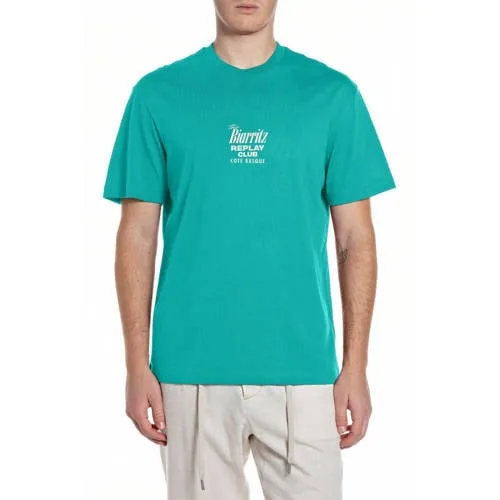 Op zoek naar een makkelijk te combineren basic met een moderne twist? Dit REPLAY heren T-shirt van katoen in emerald groen is een frisse aanvulling op je garderobe. De regular fit valt recht langs het lichaam en geeft een ontspannen uitstraling, terwijl de ronde hals en korte mouwen zorgen voor een tijdloze look. Aan de voorkant oogt het T-shirt rustig, de backprint aan de achterkant geeft net dat extra detail.Details die het verschil maken Gemaakt van 100% katoen, voelt zacht en soepel aan op de huid Regular fit voor een comfortabele pasvorm met voldoende bewegingsvrijheid Korte mouwen en ronde hals voor een klassieke T-shirt look Emerald groene kleur voor een frisse, moderne uitstraling Backprint op de rug voor een opvallend detail zonder dat de voorkant druk oogt Geen sluiting en geen borstzak voor een rustige, eenvoudige voorkantGemakkelijk te stylen in je dagelijks levenDit T-shirt past goed bij je favoriete jeans, korte broek of een casual chino. Ideaal voor een vrije dag, een etentje of een relaxte werkdag met een overshirt of vest erover. De emerald kleur geeft je outfit snel wat meer karakter, zonder dat het te opvallend wordt.REPLAY: eigentijdse casual stijlREPLAY staat bekend om moderne, casual kleding met aandacht voor pasvorm en details. De collecties sluiten aan op een eigentijdse stijl en zijn gemaakt voor dagelijks draagplezier. Met dit T-shirt haal je een basic in huis die je vaak uit de kast zult pakken.Een veelzijdig T-shirt dat je moeiteloos combineert met de rest van je garderobe.