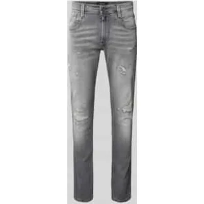 heren jeans van Replay;mix van katoen en elastaan;slim fit;Model 'Anbass';Destroyed-Look;Bandwijdte bij maat 32/32: 42 cm;Binnenbeenlengte bij maat 32/32: 81 cm