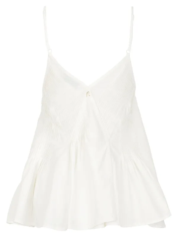 Design: A-lijn, Ritszakken aan de zijkant; Materiaal: Lyocell; Halstype: V-hals; Motief: Effen; Soort bandjes: Spaghettibandjes; Details: Volant; Extra's: Op staal naden; Pasvorm: Losse pasvorm; Armlengte: Mouwloos; Lengte: Korte pasvorm