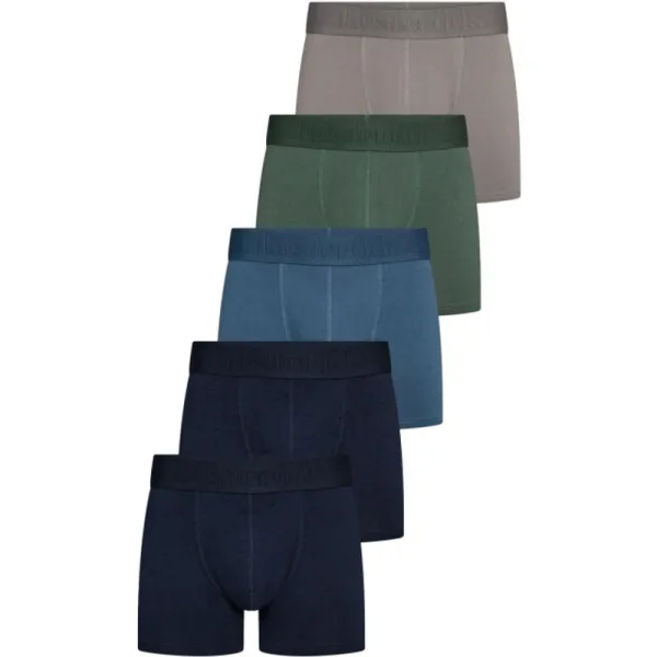 GUNNAR BAMBOO 5-PACK, van het merk Resteröds. 5 shorts in een pak. donkerblauw denimblauw donkergroen en grijs. Dit ondergoed ligt het dichtst bij je lichaam. Het eerste wat je 's ochtends aantrekt, het eerste gevoel dat je op een dag ervaart. Materiaalkeuzes zijn dus erg belangrijk. Lyocell, bamboe en biologisch katoen. Materialen die ademen en comfortabel aanvoelen voor je lichaam, met een duurzame kwaliteit waar je je lang goed in kunt voelen.