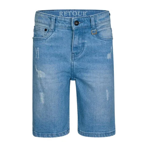 Deze korte broek is van Retour Jeans. De korte broek heeft een loose pasvorm. De taille is verstelbaar met rits- en knoopsluiting en vijf broekzakken. Draag deze denim shorts lekker casual.