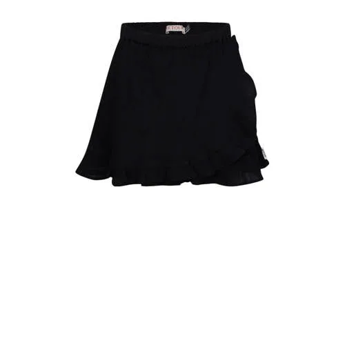 Deze Retour Jeans meisjesrok genaamd Cannes heeft een elastische tailleband. De midi-rok in zwarte kleur is gemaakt van katoen en is voorzien van speelse ruches. De taille is niet verstelbaar en het ontwerp heeft geen zakken.