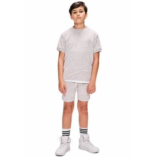 Voor relaxte dagen is deze lichtgrijze korte broek voor jongens een fijne basic. De zachte badstof voelt comfortabel aan op de huid en de regular pasvorm geeft genoeg bewegingsvrijheid om te spelen, chillen of sporten. De elastische tailleband met koord zorgt ervoor dat de broek goed blijft zitten, terwijl je de taille makkelijk kunt verstellen voor een fijne fit.Praktische details voor elke dag Gemaakt van 100% katoen, wat zacht aanvoelt en prettig draagt in het dagelijks leven Zachte badstofkwaliteit voor een comfortabel gevoel, ook direct op de huid Elastische tailleband met koord en verstelbare taille voor een goede pasvorm Regular pasvorm en regular waist voor een comfortabele, niet te strakke look Met zakken voor, handig voor kleine spullen zoals een sleutel of kaartje Effen lichtgrijze kleur, makkelijk te combineren met T-shirts en hoodies Onderdeel van een co-ord set, voor wie graag een bijpassende outfit draagt Geschikt voor peuters, kleuters, schoolkinderen en tieners binnen de daily collectieFijn te dragen, eenvoudig te verzorgenDe korte broek is wasbaar op 30 graden en lauw strijkbaar. In de droogtrommel drogen wordt afgeraden, zo blijft de stof mooier. Ideaal voor dagelijks gebruik waarbij comfort voorop staat.Retour Jeans voor moderne kidsRetour Jeans richt zich op kindermode met een stoere en eigentijdse uitstraling. De collecties worden ontworpen met aandacht voor draaggemak, pasvorm en stijlvolle details, zodat kinderen zich vrij kunnen bewegen en ouders kunnen rekenen op betrouwbare kwaliteit.Een comfortabele korte broek die elke dag weer uit de kast gepakt kan worden.