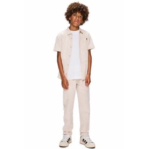 Deze jongensbroek van katoen en linnen van Retour Jeans is een luchtige basic voor schooldagen, feestjes en alles daartussenin. De ecru/witte streep geeft een rustige, verzorgde uitstraling, terwijl de relaxed fit zorgt voor genoeg bewegingsvrijheid om zorgeloos te spelen en rond te rennen.Luchtige broek met subtiele streep Gemaakt van 88% katoen / 12% linnen, een soepele combinatie die zacht aanvoelt en prettig draagt op warmere dagen Relaxed pasvorm met regular waist voor een comfortabele, wat lossere look Elastische tailleband met koord, zodat de broek gemakkelijk aan en uit gaat Riemlussen voor wie graag een riem draagt of het extra netjes wil stylen Zakken voor, handig voor kleine spullen zoals een sleutel of zakdoek Ecru/wit streepdessin dat zowel casual als netjes gedragen kan worden Onderdeel van een co-ord set binnen de collectie, voor wie graag een afgestemde outfit kiest Onderhoudsvriendelijk: wasbaar op 30 graden, lauw strijkbaar (1 punt) en niet drogen in de droogtrommelKlaar voor school, stad en speciale gelegenhedenDe Jurgen broek uit de Daily collectie past net zo makkelijk bij een T-shirt en sneakers als onder een overhemd voor een bruiloft of familiefeest. De city smart uitstraling maakt het een geschikte keuze voor kinderen in de schoolkind en tiener maatboog die zich graag iets volwassener kleden, maar nog wel vrij willen bewegen.Retour Jeans voor eigentijdse kidsRetour Jeans ontwikkelt kinderkleding met een moderne, stoere uitstraling en oog voor pasvorm. De ontwerpen zijn afgestemd op het actieve leven van kinderen, met details die het dagelijks dragen net even makkelijker maken. Zo krijgt je kind een broek waar het graag in gezien wordt en die praktisch is in het gebruik.Een veelzijdige broek die er verzorgd uitziet en prettig draagt, elke dag opnieuw.