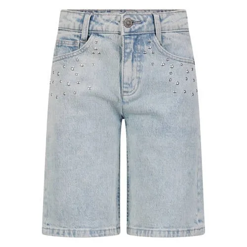Voor elke drukke schooldag of relaxte middag is de Retour Jeans Mila denim short voor meisjes een praktische basic. Deze medium blue denim korte broek heeft een relaxed pasvorm en een regular waist, waardoor er genoeg bewegingsvrijheid is om te rennen, fietsen en spelen. De klassieke 5-pocket stijl krijgt een speelse twist door de studs en de all over print in de denim.Details die het elke dag makkelijk maken Gemaakt van 99% katoen en 1% elastaan voor een zachte stof met lichte stretch Relaxed fit en regular waist voor een comfortabele, niet te strakke pasvorm Verstelbare taille aan de binnenkant zodat de short meegroeit met je kind Rits- en knoopsluiting die stevig dicht blijft tijdens actief spelen Klassieke 5-pocket styling met studs als detail Medium blue denim kleur die makkelijk te combineren is met T-shirts en tops Wasbaar op 30 graden, lauw strijkbaar en niet geschikt voor de droogtrommelGeschikt voor schooldagen en vrije tijdDe Mila denim short past bij de dagelijkse garderobe van schoolkinderen en tieners. Combineer met een eenvoudig T-shirt en sneakers voor school, of met een luchtige top voor warme dagen in de vakantie. Door de verstelbare taille zit de korte broek steeds goed, ook als er in maat wordt geschipperd tussen seizoenen.Retour Jeans voor kids met een eigen stijlRetour Jeans richt zich op kinderkleding met een eigentijdse uitstraling en een comfortabele pasvorm. De collecties sluiten aan bij wat kinderen graag dragen, met vertrouwde materialen en doordachte details die het dagelijks dragen praktisch maken. Zo krijgt je kind kleding waarin spelen, ontdekken en bewegen centraal staan.Een praktische keuze voor zomerse dagen en actieve kids.