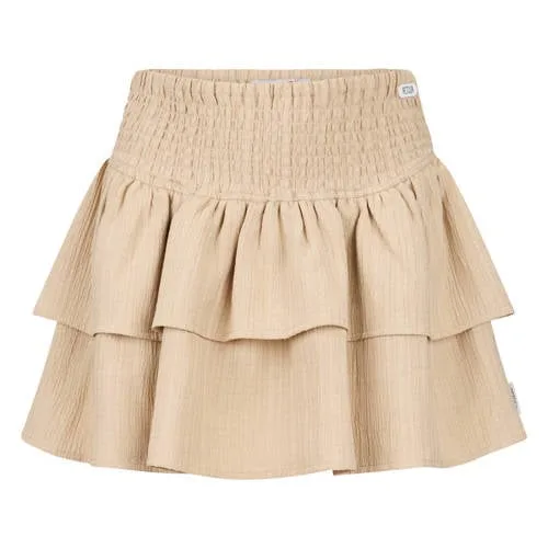 De Retour Jeans meisjes rok Elsa is een lichte, speelse rok voor alledaagse outfits en speciale momenten. De rok is uitgevoerd in een zachte beige kleur en heeft een kort model dat ideaal is voor zonnige dagen of feestjes op school. Door de combinatie van stroken en smockwerk krijgt de rok een levendige uitstraling, terwijl de elastische tailleband zorgt dat de rok comfortabel aansluit.Luchtige rok met fijne details Kort model, geïnspireerd op skorts en strokenrokken, voor een speelse look Gemaakt van polyester, licht van gewicht en vormvast Elastische tailleband, gemakkelijk aan en uit te trekken Smockwerk in de taille voor een mooie aansluiting rond de heupen Effen beige kleur, eenvoudig te combineren met tops, T-shirts en truien Zonder zakken, waardoor de rok een slanke, rustige vorm houdtMakkelijk combineren in elke garderobeDeze Elsa rok past bij veel verschillende outfits. In de zomer met een luchtig shirt en sandalen, op koelere dagen met een maillot en sneakers. De effen kleur maakt het eenvoudig om te combineren met prints of felle kleuren.Retour Jeans voor moderne kidsRetour Jeans staat bekend om eigentijdse kindercollecties met aandacht voor pasvorm en draaggemak. De ontwerpen sluiten goed aan bij het actieve leven van kinderen en zijn gemaakt om vaak gedragen te worden.Een veelzijdige rok die snel een vaste plek in de kledingkast zal krijgen.