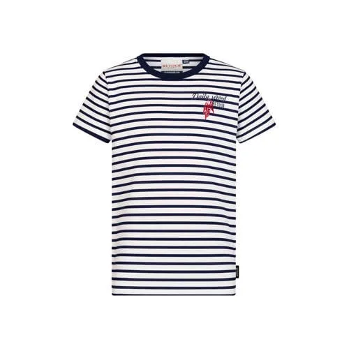 Voor ontspannen schooldagen en vrije tijd is dit donkerblauwe katoen jongens T-shirt van Retour Jeans een praktische basic. De donkerblauw/witte kleurcombinatie en het logo op de borst geven een sportieve uitstraling die makkelijk te combineren is met jeans, shorts of een jogger.Details die elke dag werken Gemaakt van 100% katoen, voelt zacht en soepel aan op de huid Donkerblauw/witte kleur met logo print voor een sportieve look Korte mouwen en ronde hals, ideaal voor dagelijks gebruik Middellange lengte, valt makkelijk over de broekrand Zonder sluiting, snel aan en uit te trekken Wasbaar op 30 graden en lauw strijkbaar (1 punt) Niet drogen in de droogtrommel, zo blijft de stof langer mooi Onderdeel van de 'Daily' collectie, passend bij alledaagse outfitsPraktisch in het dagelijks levenDit T-shirt is gemaakt voor tieners die de hele dag in beweging zijn. Of het nu gaat om school, een middag buitenspelen of een relaxte dag thuis, de zachte katoenen stof biedt comfort en de pasvorm met korte mouw en ronde hals sluit prettig aan.Retour Jeans voor actieve kidsRetour Jeans ontwerpt kindermode met een eigentijdse uitstraling en praktische details. De kleding is gemaakt met oog voor kwaliteit en een fijne pasvorm, zodat kinderen zich vrij kunnen bewegen. Met dit T-shirt haal je een betrouwbaar basisitem in huis dat makkelijk in de kast van elke tiener past.Een comfortabel T-shirt voor elke dag, met een frisse, sportieve look.