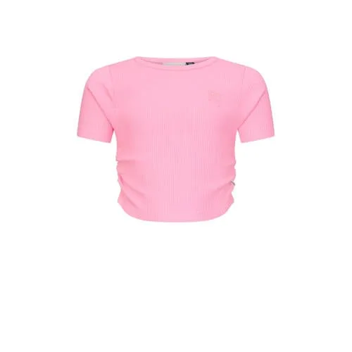 Dit T-shirt van Retour Jeans heeft korte mouwen en een ronde hals. Gemaakt van 100% katoen voor comfortabel dragen. Lichtroze kleur met opvallende plooien, een speelse en frisse look voor meisjes.