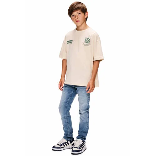 Voor een relaxte, maar verzorgde look is het Retour Jeans jongens T-shirt Nathan een fijne basic voor elke dag. Dit creme T-shirt heeft een rustige voorkant en een opvallende backprint, waardoor het zowel simpel als stoer oogt. De middellange lengte en rechte pasvorm geven ruimte om vrij te bewegen, of je kind nu speelt, fietst of in de klas zit.Comfortabel T-shirt met stoere backprint Gemaakt van 100 procent katoen, voelt zacht en luchtig aan op de huid Crème kleur die makkelijk combineert met jeans, joggingbroek of korte broek Korte mouwen en ronde hals, ideaal voor schooldagen en vrije tijd Geen sluiting, kan eenvoudig over het hoofd worden aangetrokken Stoere backprint voor een verrassend detail op de achterkant Geschikt voor peuter, kleuter, schoolkind en tiener, afhankelijk van de maat Onderhoudsvriendelijk, wasbaar op 30 graden en lauw strijkbaarElke dag draagbaarDit T-shirt uit de 'Daily' collectie is gemaakt voor dagelijks gebruik. De middellange lengte valt mooi op een broek en kruipt minder snel omhoog tijdens bewegen. Door de zachte katoenen stof blijft het comfortabel, ook als het de hele dag wordt gedragen.Stoere kidsstijl van Retour JeansRetour Jeans staat bekend om kinderkleding met een moderne, stoere uitstraling en een fijne pasvorm. De designs sluiten aan bij wat kinderen zelf graag dragen, met herkenbare details zoals backprints en eigentijdse kleuren. Zo combineert Retour Jeans draagcomfort met een stijl die past bij actieve kids.Een veelzijdig T-shirt waarop je kind de hele dag prettig kan spelen, leren en ontspannen.