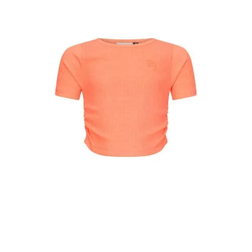 Dit T-shirt van Retour Jeans is gemaakt van 100% katoen en heeft een ronde hals. De korte mouwen zorgen voor een speelse look. De koraaloranje kleur geeft een vrolijke uitstraling en de plooien maken het extra bijzonder.