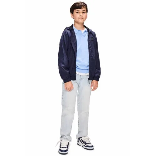 Met de Retour Jeans jongens zomerjas Dustin is jouw kind klaar voor wisselvallige dagen. De donkerblauwe jas heeft een rechtvallend model dat makkelijk over een trui of T-shirt past. De lichte, gevoerde stof draagt prettig tijdens frisse ochtenden of koelere zomeravonden, terwijl de vaste capuchon extra bescherming geeft tegen wind en een korte bui.Praktische details voor elke dag Winddichte zomerjas met voering voor comfortabele warmte op frisse dagen Waterafstotende buitenkant die helpt tegen lichte regen en spatwater Vaste capuchon en hoge kraag voor extra beschutting Ritssluiting over de hele lengte zodat de jas snel aan en uit gaat Elastische manchetten die goed aansluiten en tocht tegenhouden Handige steekzakken voor kleine spullen of om handen in op te warmen Effen donkerblauwe kleur die makkelijk combineert met school- en vrijetijdskleding Geschikt voor peuters, kleuters, schoolkinderen en tieners in de daily collectieFijne jas voor school en vrije tijdDeze zomerjas past goed bij het dagelijkse leven van actieve jongens. Ideaal voor naar school, buitenspelen of een dagje weg. De jas kan chemisch gereinigd worden en mag niet in de droogtrommel, zo blijft de vorm en uitstraling mooi.Stoere kidswear van Retour JeansRetour Jeans staat bekend om kinderkleding met een eigentijdse uitstraling en doordachte details. De ontwerpen combineren comfort met een moderne look, zodat kinderen zich vrij kunnen bewegen en ouders kunnen rekenen op betrouwbare kwaliteit.Een praktische en stijlvolle zomerjas waar je kind elke dag plezier van heeft.