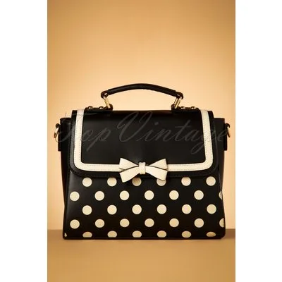'Influence' anderen met je (retro) stijl terwijl je deze 50s Retro Influencer Handbag in Black bij je draagt! Een kleine beauty uitgevoerd in zwart 'faux' leder, voorzien van crèmekleurige details waaronder de bies, het strikje op de klep en natuurlijk de vrolijke polkadot print. Afgewerkt met een kort hengsel en een lang afneembaar hengsel waardoor je haar op veel manieren kunt dragen. Zie jij jezelf al lopen met dit schatje aan je arm? ;-) * Small sized * Verborgen magneetsluiting * Ritssluiting * Binnenvak met 3 extra vakjes, waarvan 1 met rits * Goudkleurige details * Wordt geleverd met een los, verstelbaar hengsel * Kan crossbody gedragen worden * Groot genoeg voor je telefoon, portemonnee, sleutels en je favo lippenstift