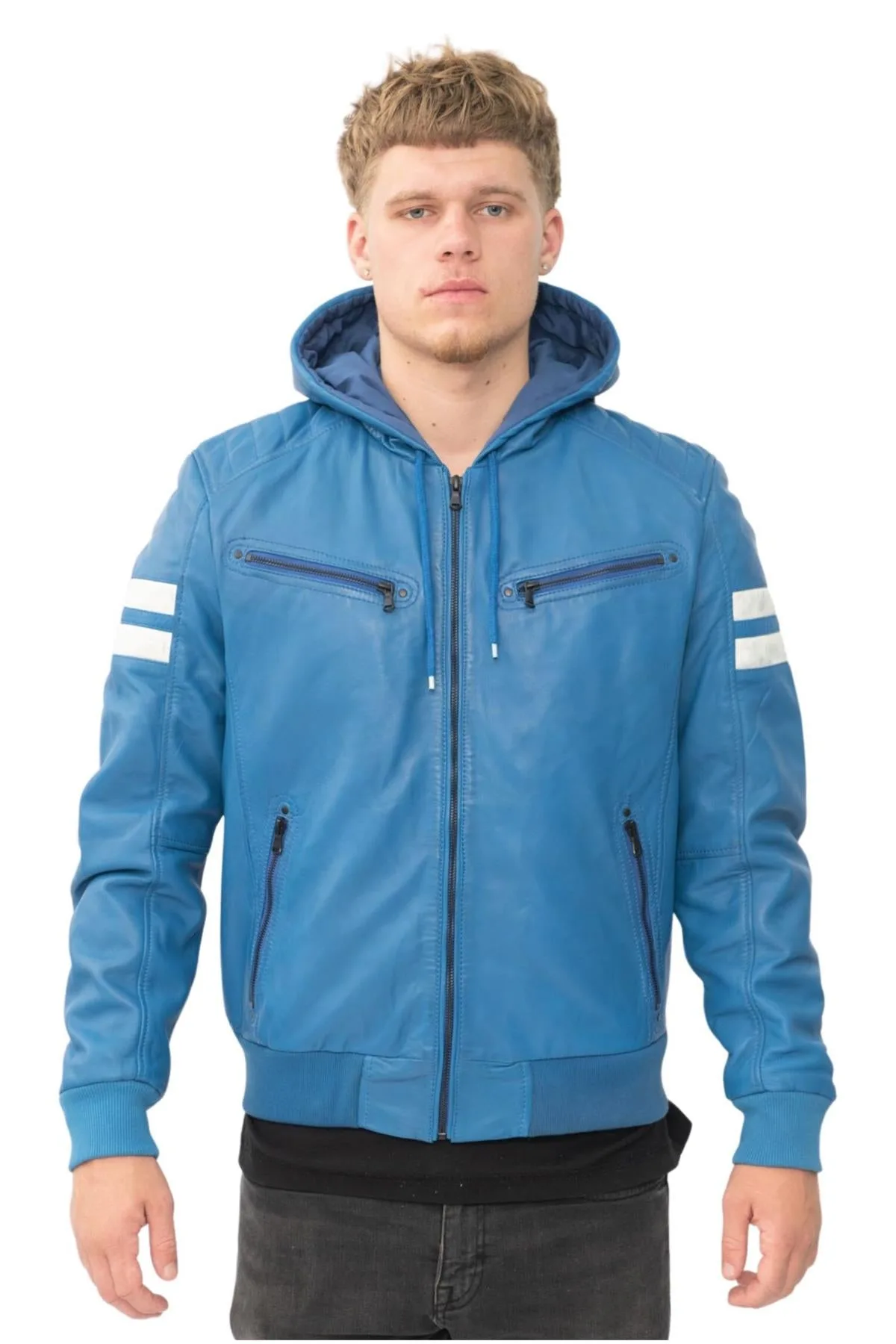 Retro leren herenbomberjack met capuchon – Skopje