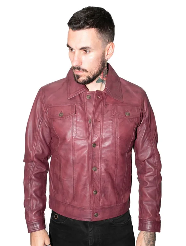 De trucker is een populaire jasstijl die in de jaren zestig werd geïntroduceerd en hier opnieuw is vormgegeven in ons premium nappaleer. We maken voornamelijk gebruik van denim en geven een draai aan deze geliefde stijl. Het resultaat is een hoogwaardige, ultrazachte afwerking die zorgt voor een strakke en strakke esthetiek. Dit jack heeft alle kenmerken die kenmerkend zijn voor het originele truckerjack, waaronder puntige klepzakken op de borst, schuine naden aan de voorkant en een puntige kraag. Deze jas is verkrijgbaar in vier verschillende kleurstellingen, waaronder ons verweerd zwart voor een vintage-esthetiek en bordeauxrood voor een gedurfde, eigentijdse look, ideaal voor als je uitgaat en indruk wilt maken. • 100% premium ultrazacht nappaleer • Schuine naden lopen van borst tot taille • Puntige kraag en klepzakken over de borst • Inclusief zakken geïntegreerd in de voering van de jas en vier buitenzakken • Verstelbare taille en manchetten