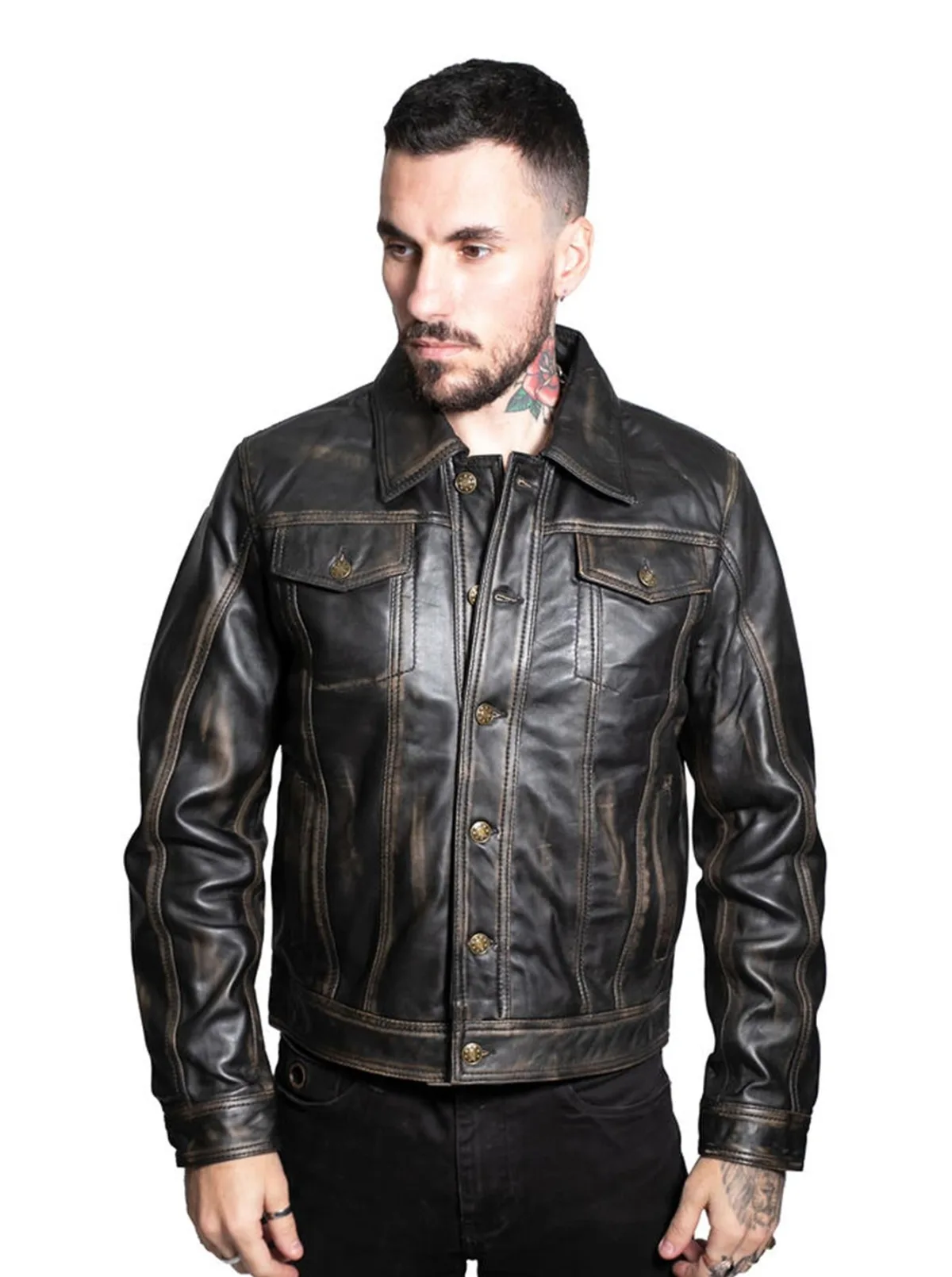 Retro leren truckerjack voor heren, Constantine Prijzen
