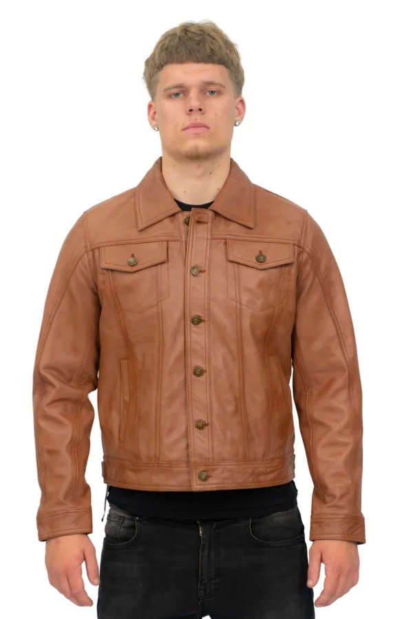 Retro leren truckerjack voor heren, Constantine