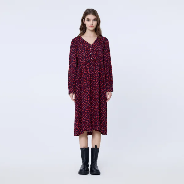 Trendy en casual, deze jurk brengt comfort en stijl voor je dagelijkse look. Geïnspireerd door de nachtelijke stekken uit de jaren 1950; Het is versierd met Golden Randen -knoppen vooraan en biedt een royaal volume van taille tot zoom. Alles gesneden in een zacht ademend flanel in een gedrukte of een gewone. Een stuk voor elke dag dat je op verschillende seizoenen zal volgen. Om te associëren met een Perfecto-stijl jas en platte laarzen gelegd voor een "neo-rock" look of sneakers voor een nog meer ontspannen stijl. Productdetails: • Vorm: los, trapeze • Lengte: 115 cm • Lange mouwen • v -neck • Geen bevestiging