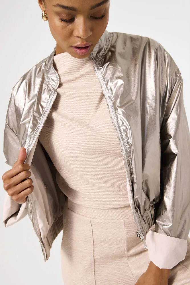 Omkeerbare bomberjas met steekzakken. Het ideale item voor dit seizoen! Deze jas is gemaakt van waterafstotend materiaal en heeft lange mouwen, een bomberkraag, een ritssluiting en een generous fit. Dit item is gemaakt van 100% polyester.