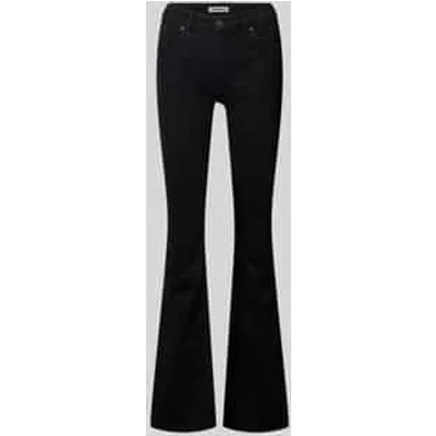 Damesjeans van Review;Katoenmix met stretchgehalte;Flared Cut;Middelhoge band;Zwarte wassing;5-pocketdesign;Knoop- en ritssluiting;Bandwijdte bij maat 27: 35 cm;Binnenbeenlengte bij maat 27: 85 cm