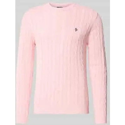 Heren gebreide trui van REVIEW;katoenmix;modern fit;kabelpatroon;ronde hals;gestikt logo;ribboorden;Ruglengte bij maat M: 70 cm;Mouwlengte bij maat M: 74 cm