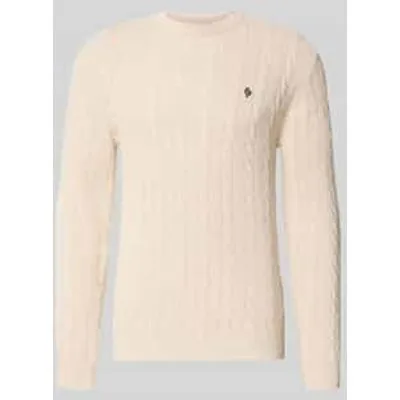 Heren gebreide trui van REVIEW;katoenmix;modern fit;kabelpatroon;ronde hals;gestikt logo;ribboorden;Ruglengte bij maat M: 70 cm;Mouwlengte bij maat M: 74 cm
