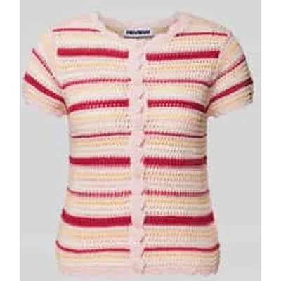 dames gehaakte top van REVIEW;puur katoen;slim fit;streepmotief;Muschelrand-detail;knoopsluiting;ruglengte bij maat s: 50 cm