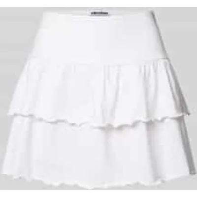Dames minirok van REVIEW;mix van katoen en elastaan;A-lijn;elastische band;laagjeslook;Volants;bandwijdte bij maat s: 39 cm;Totale lengte bij maat S: 37 cm