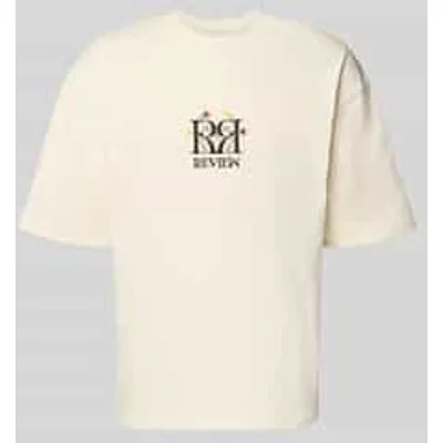 T-shirt van REVIEW voor heren;Puur katoen;Oversized fit;Gestikt logo;Bloemenstiksels;Ronde hals;Ruglengte bij maat M: 70 cm