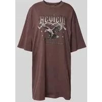 T-shirtjurk van REVIEW;Puur katoen;Oversized;Model 'ROCK';Opstaande kraag;Label- en motiefprint;Halflange mouwen;Minilengte;Ruglengte bij maat S: 85 cm;Borstomvang bij maat S: 59 cm;Mouwlengte bij maat S: 27 cm
