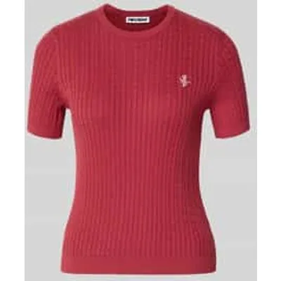 Damespullover met korte mouwen van Review;Puur katoen;Slim fit;Kabelpatroon;Ronde hals;Logo;Ribboordjes aan mouwen en zoom;Ruglengte bij maat S: 53 cm;Mouwlengte bij maat S: 21 cm