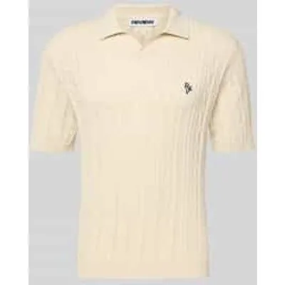 Heren poloshirt van knitwear van REVIEW;puur katoen;slim fit;kabelpatroon;labelstitching;ruglengte bij maat M: 69 cm