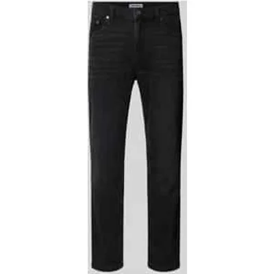 Herenjeans van REVIEW;Mix van katoen en elastaan;Straight fit;Zwarte wassing;5-pocketmodel;Knoop- en ritssluiting;Bandwijdte bij maat 32/32: 40 cm;Binnenbeenlengte bij maat 32/32: 73 cm