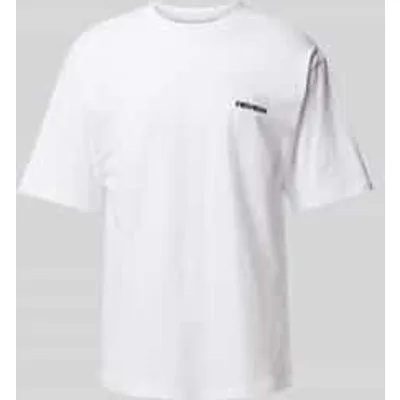 T-shirt van REVIEW voor heren;Katoenmix;Regular fit;Labelprint;Geribde ronde hals;Ruglengte bij maat S: 58 cm