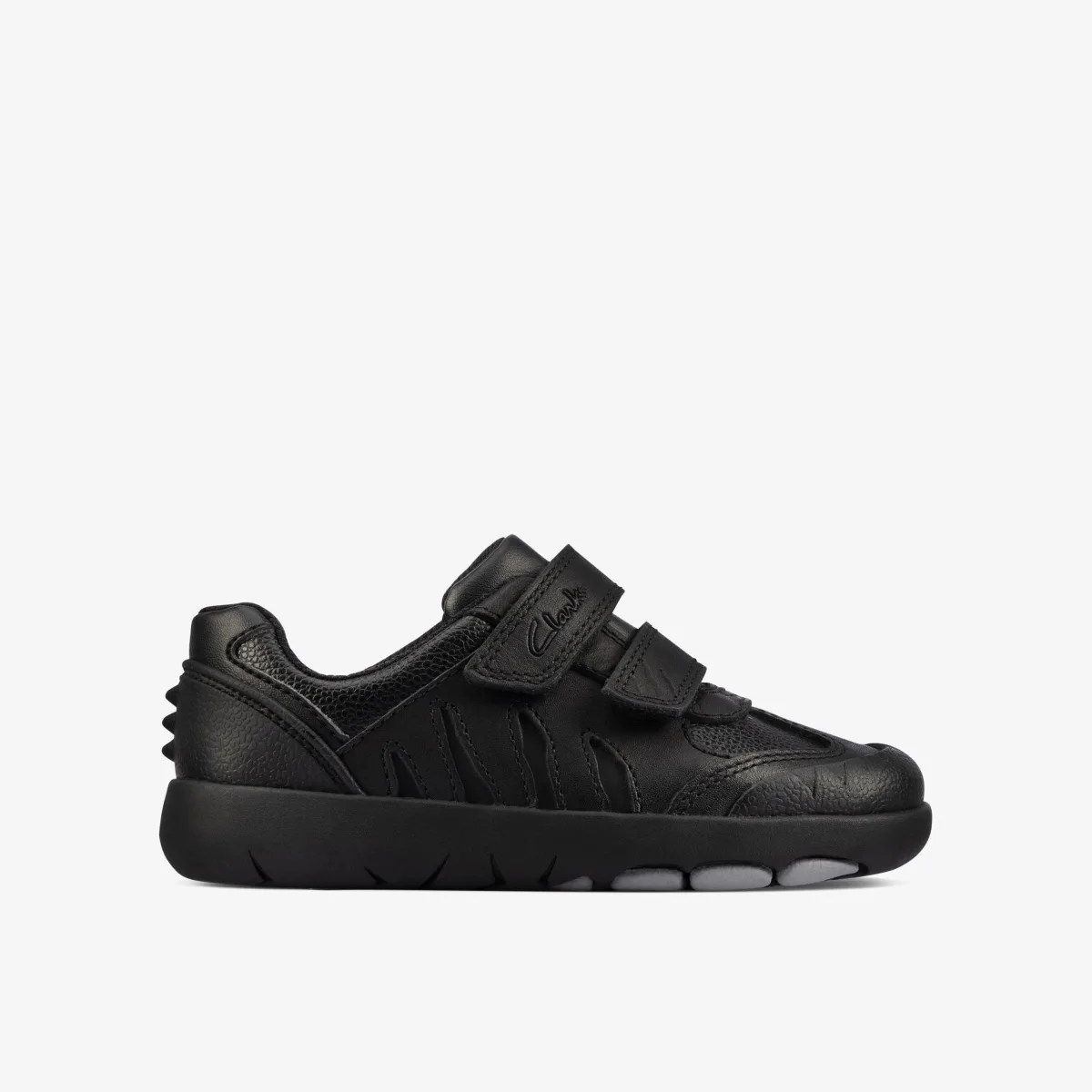School schoen Rex Stride toont coole Dino-geïnspireerde details om de kleintjes groot te laten dromen. Gemaakt van duurzaam zwart leer, is het uitgerust met ROARsome 'slash' marks op de bovenkant en speelse 3D Dino-spikes bij de hak. Als onderdeel van onze PLAYPRINTS-collectie heeft het een leuk T-Rex voetafdrukontwerp op de zool, zodat kinderen hun eigen unieke stempel op de wereld kunnen drukken. Het beste van alles is dat we het hebben ontworpen met handige klittenbandsluitingen, zodat het in enkele seconden kan worden aangetrokken – ze zijn in een mum van tijd de deur uit!
