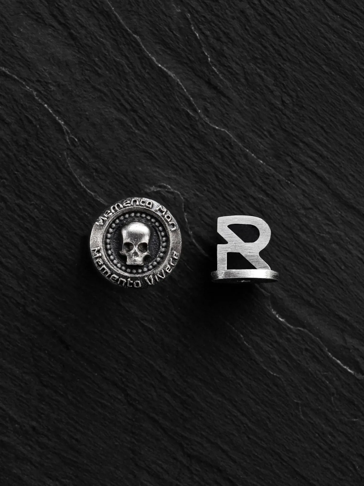 REYTEL Oorbel ‘MEMENTO MORI. VIVERE MEMENTO’ zilver