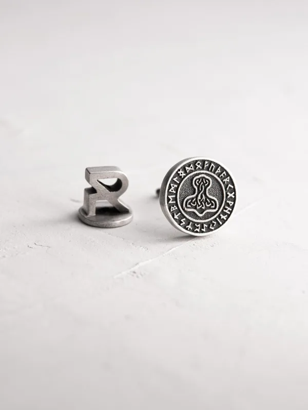 REYTEL Oorbel ‘THOR’S HAMMER. RUNES’ zilver