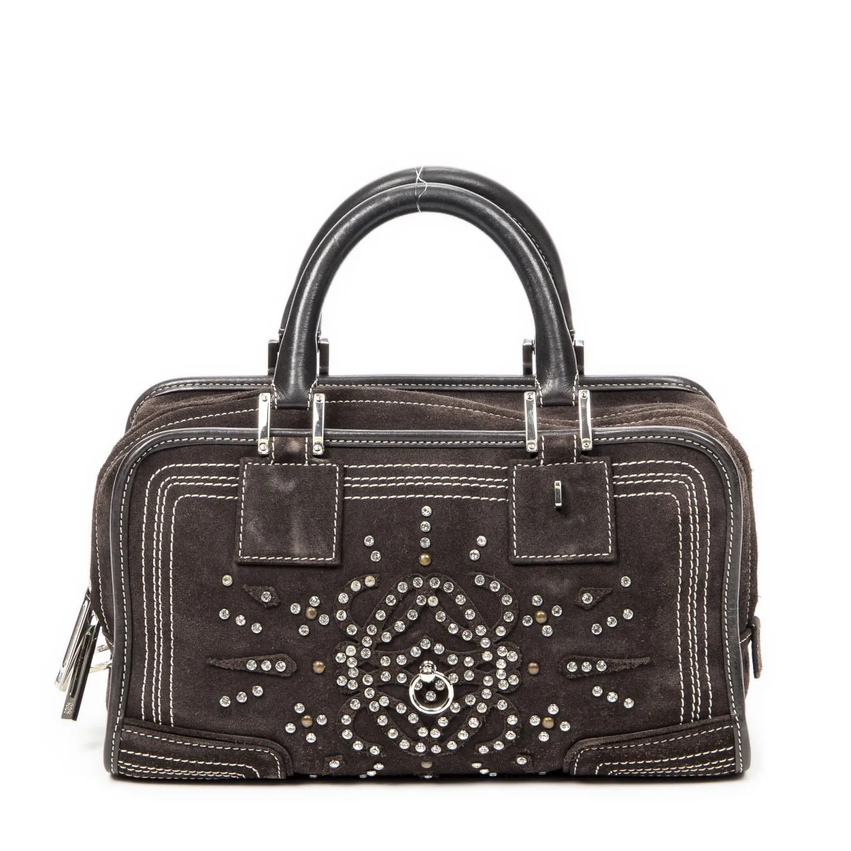 Loewe Tassen Rhinestone Amazona 28 Handtas in de Donkerbruin Kalfleer in de Silver hardware. Het product is in In Uitstekende Staat (A). Afmetingen: 29x16x13 cm Inclusief accessoires: Dustbag; Cadenas; Keys in Clochette Opmerkingen over de buitenkant: Versleten suède leer Opmerkingen over de band/het handvat: Licht versleten BrandCo Paris vindt zeldzame artikelen in de beste staat voor ongelooflijke prijzen. Het is de moeite waard om geduldig te zijn! Koop met vertrouwen: alle artikelen van BrandCo Paris worden zorgvuldig geselecteerd en geverifieerd door ons team van experts. Alle artikelen worden geleverd met een certificaat van echtheid en verpakt door BrandCo Paris. Classificatietabel voor de conditie van het artikel: N (als nieuw) AA (perfecte staat) A (uitstekende staat) AB (zeer goede staat) B (goede/redelijke staat)