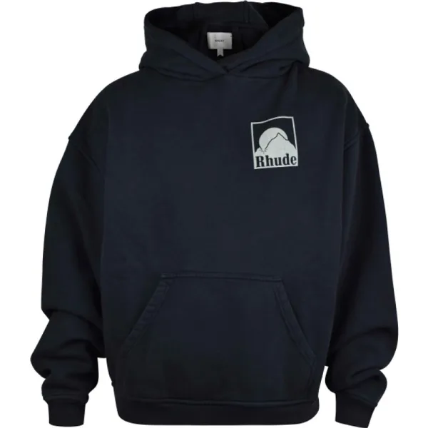 Zwarte Rhude hoodie.Lange mouwen en kangoeroezakken aan de voorkant. grafische print op rug en borst.Geribde boorden en zoom .100% katoen.