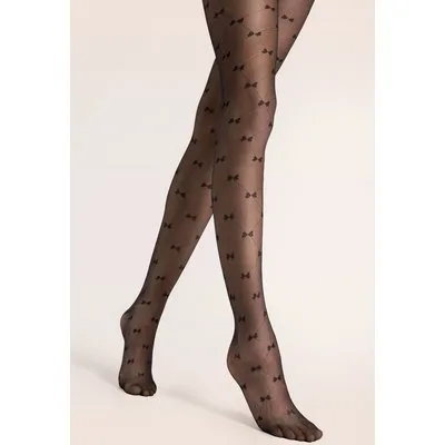 Een cadeautje voor je benen! Deze panty is uitgevoerd in een zachte en elastische zwarte 20 denier stof die heerlijk draagt, voorzien van een ruitjes en strikjes patroon! * 20 denier * Platte naden * Tenen vrij van naden * Katoenen kruisje (alléén in maat 3 en 4!)