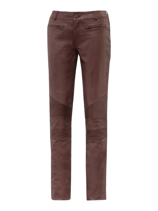 Design: Gevoerde zoom/rand; Type sluiting: Knoopsluiting; Materiaal: Leer; Motief: Effen; Extra's: Op staal naden, Riemlussen; Lengte: Lang/maxi; Pasvorm: Slimfit; Taillehoogte: Low waist