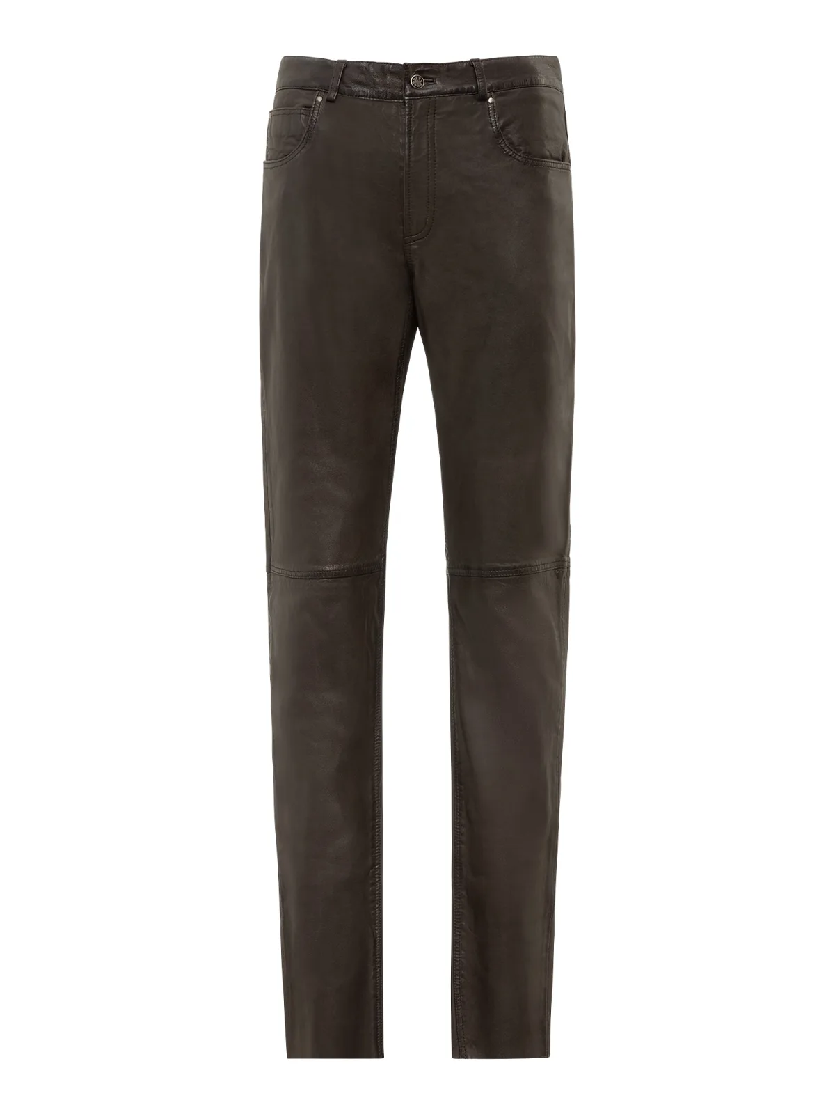Design: Gevoerde zoom/rand; Type sluiting: Knoopsluiting; Materiaal: Leer; Motief: Effen; Extra's: All-over patroon, Riemlussen; Lengte: Lang/maxi; Pasvorm: Slimfit
