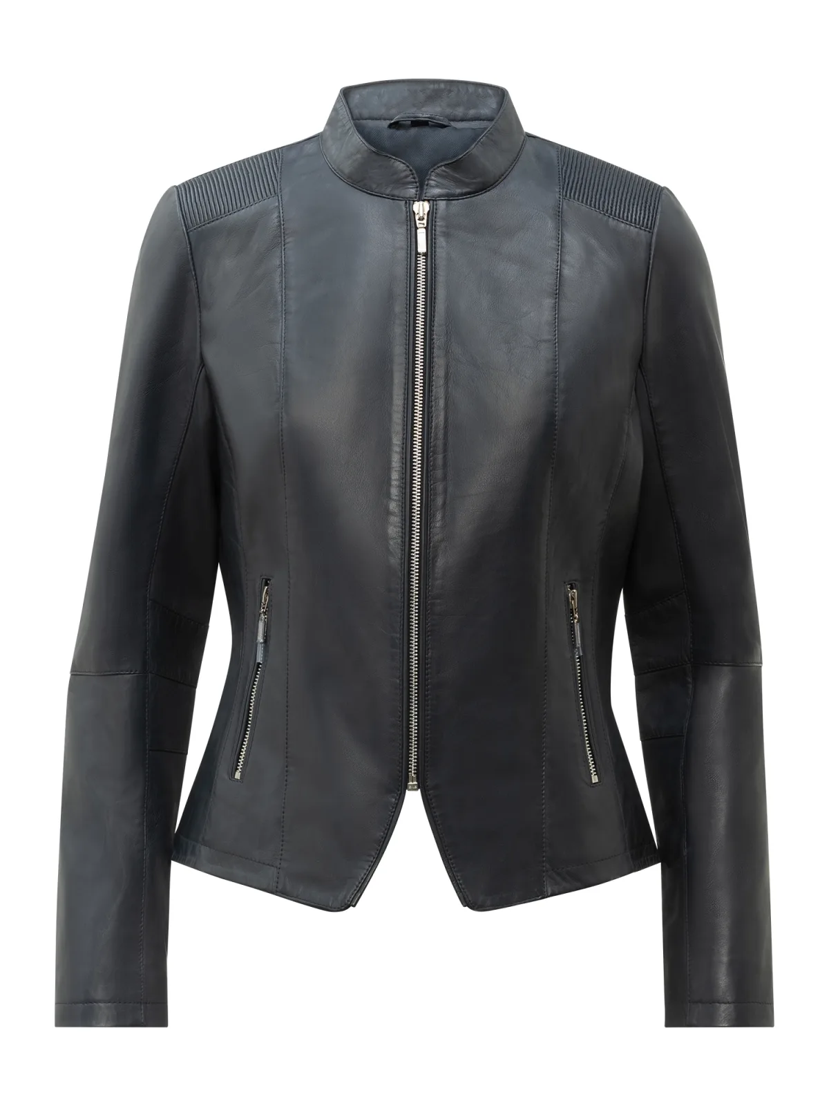Design: Extra lange mouwen; Type sluiting: Ritssluiting; Voering: Licht gevoerd; Materiaal: Leer; Motief: Effen; Extra's: Op staal naden; Pasvorm: Aansluitende pasvorm