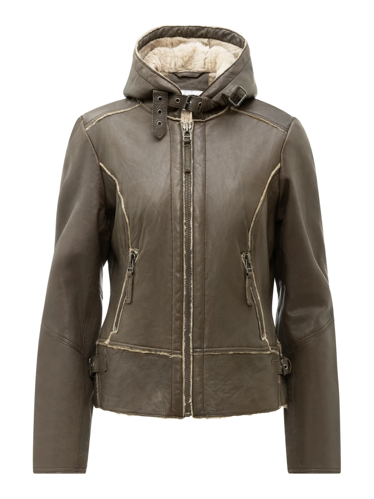 Design: Extra lange mouwen; Type sluiting: Ritssluiting; Type jas: Bikerjack; Voering: Warm gevoerd; Materiaal: Leer; Motief: Effen; Extra's: Zacht opgeruwde binnenkant; Pasvorm: Normale pasvorm