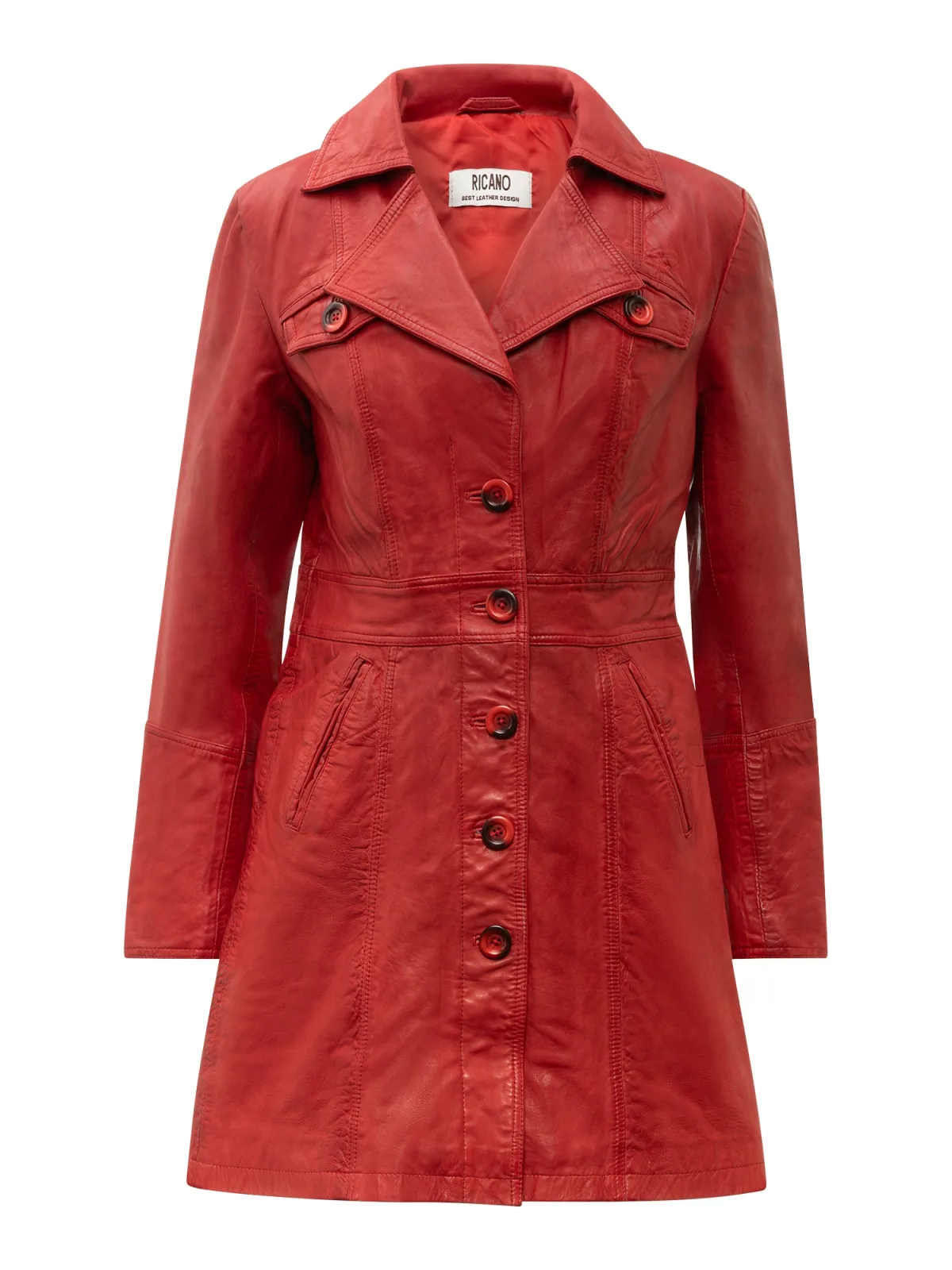 Type mantel: Klassieke mantel; Design: Placket; Type sluiting: Knoopsluiting; Voering: Licht gevoerd; Materiaal: Leer; Motief: Effen; Extra's: Zacht opgeruwde binnenkant; Pasvorm: Aansluitende pasvorm; Lengte: Normale lengte