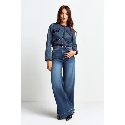 Rich & Royal Boxy Denim Jacket With Tapes Denim Blue