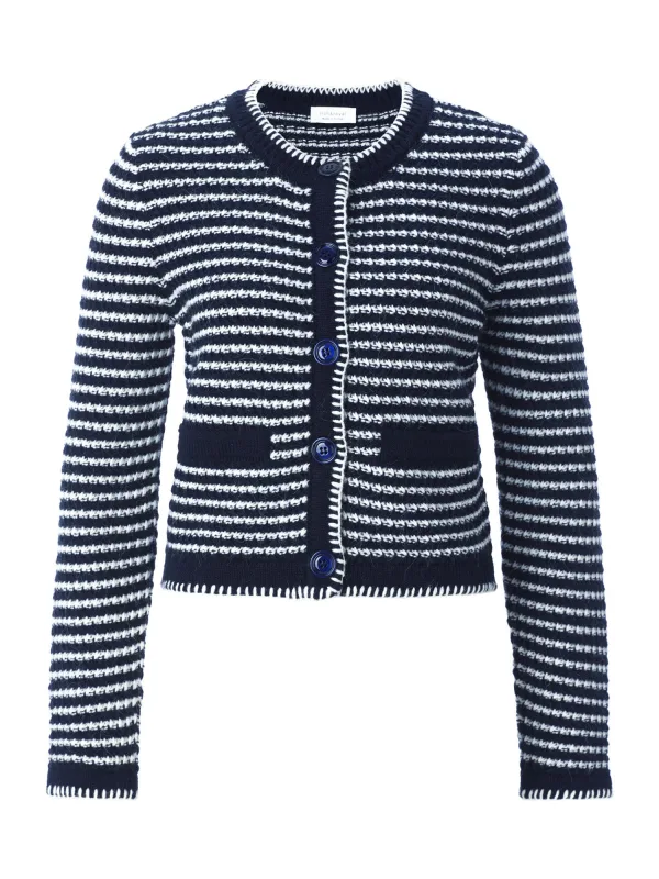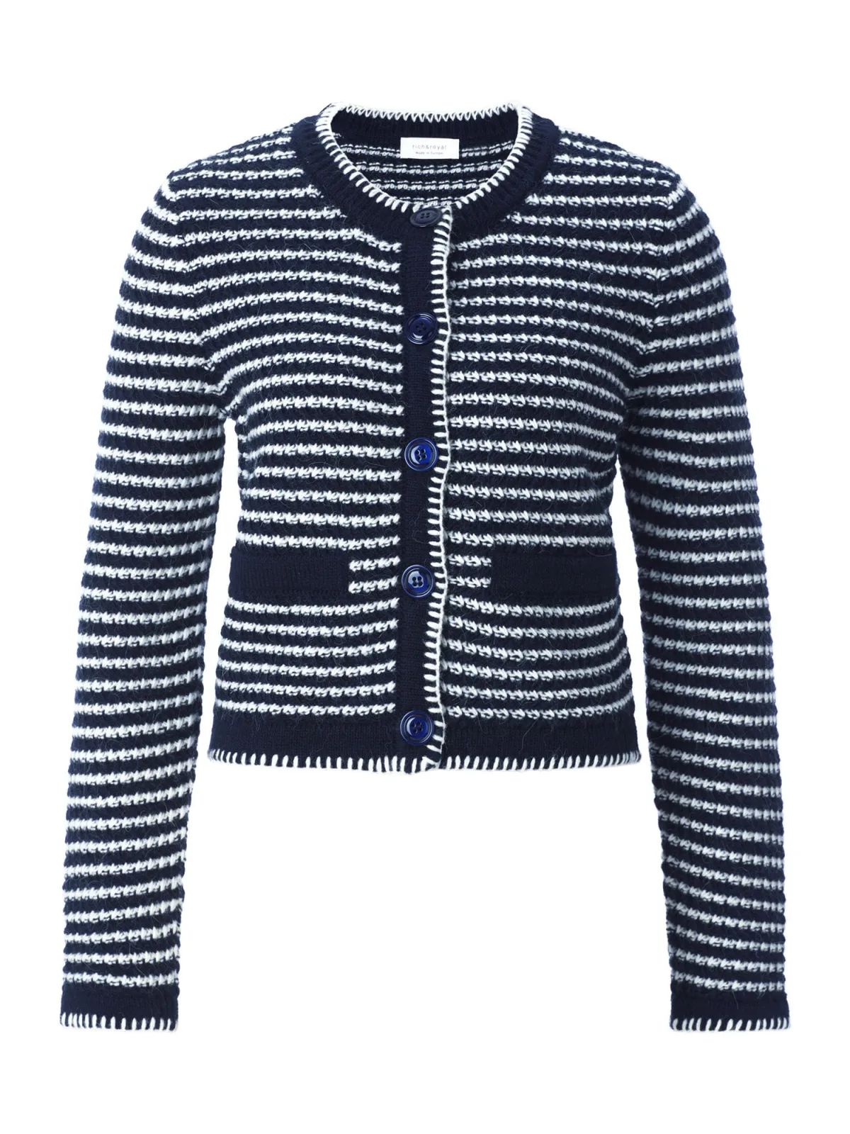 Design: Knop placket; Type sluiting: Knoopsluiting; Materiaal: Knitwear; Halstype: Ronde hals; Motief: Gestreept; Extra's: All-over patroon; Pasvorm: Normale pasvorm; Armlengte: Lange mouw; Lengte: Normale lengte