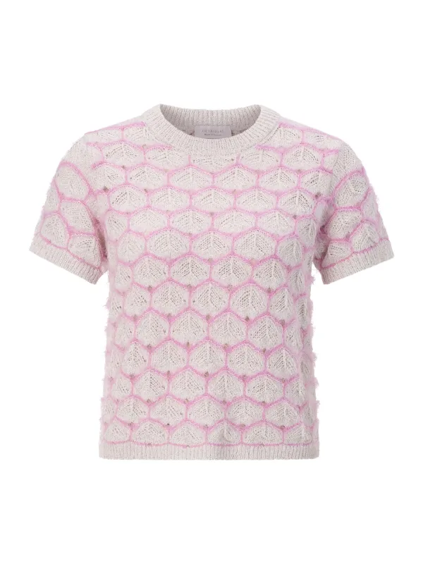 Design: Gevoerde zoom/rand, Geribd ceintuurtje; Type sluiting: Slip; Materiaal: Knitwear; Halstype: Ronde hals; Details: Franjes, Mesh; Extra's: All-over patroon, Op staal naden; Pasvorm: Normale pasvorm; Armlengte: Kwartmouw; Lengte: Normale lengte